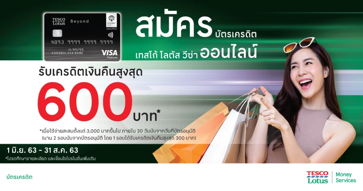 สมัครบัตรเครดิตเทสโก้ โลตัส วีซ่า ออนไลน์ วันนี้! รับเครดิตเงินคืนสูงสุด 600 บาท*