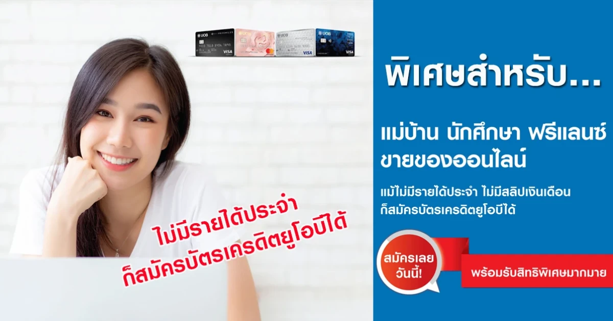พิเศษสำหรับ...แม่บ้าน นักศึกษา ฟรีแลนซ์ ขายของออนไลน์ แม้ไม่มีรายได้ประจำ ไม่มีสลิปเงินเดือน ก็สมัครบัตรเครดิตยูโอบี ได้