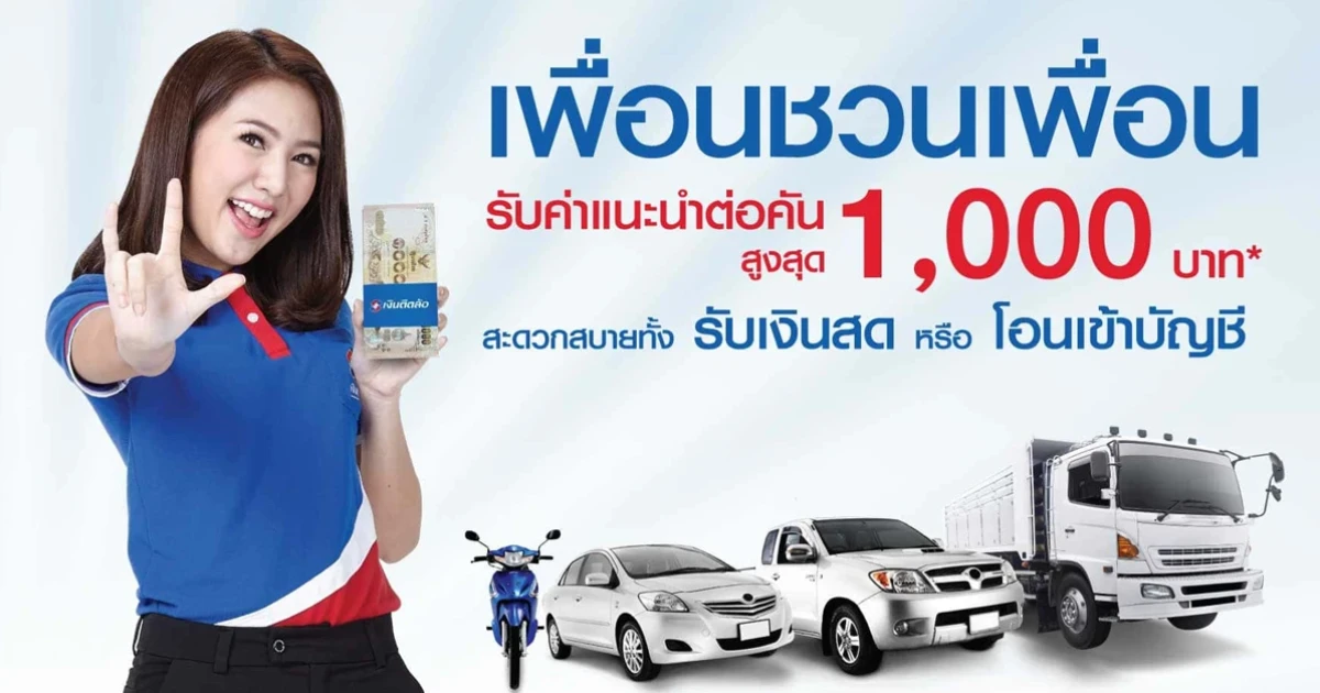 เพื่อนชวนเพื่อนขอสินเชื่อทะเบียน รับค่าแนะนำต่อคันสูงสุด 1,000 บาท จากเงินติดล้อ