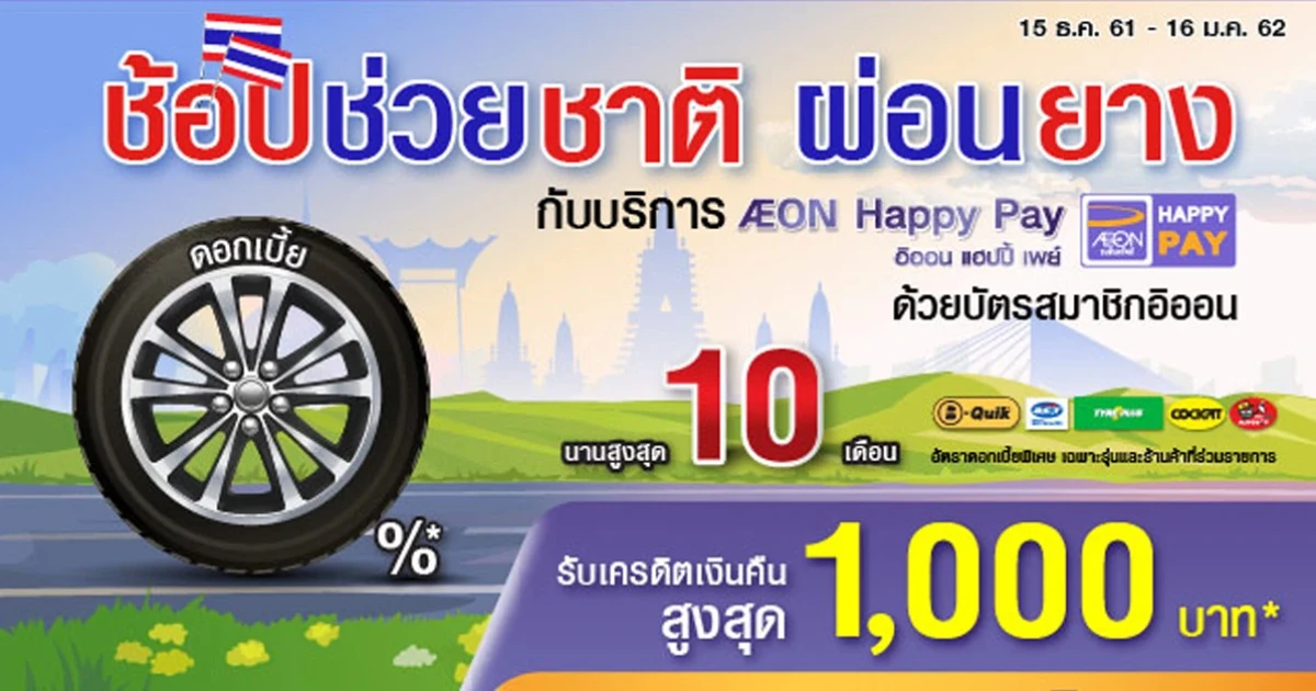 ช้อปช่วยชาติ ผ่อนยาง กับบริการ AEON Happy Pay ด้วยบัตรสมาชิกอิออน วันนี้ - 16 ม.ค. 62