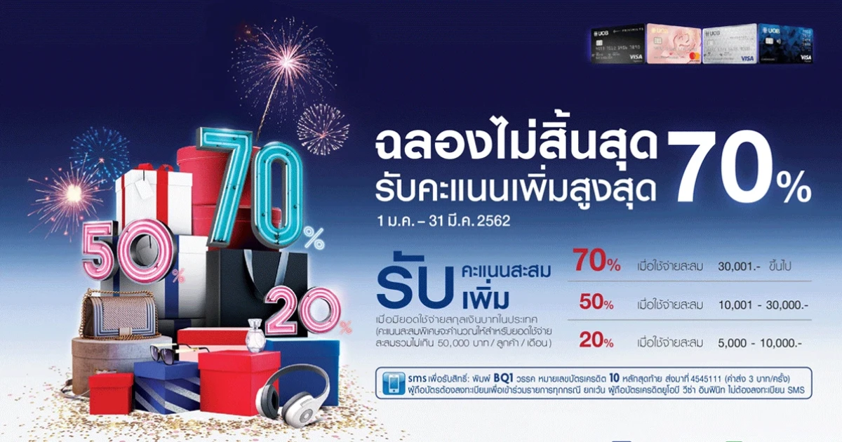 บัตรเครดิตยูโอบีให้คุณฉลองไม่สิ้นสุด รับคะแนนเพิ่มสูงสุด 70%