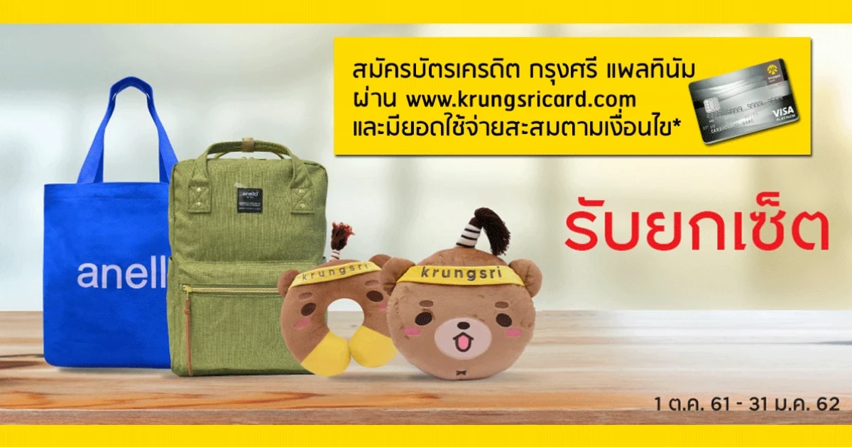 สมัครบัตรเครดิตกรุงศรี แพลทินัม วันนี้! รับของสมนาคุณยกเซ็ต และรับเพิ่ม เซ็ตหมอนหมีกินจุง