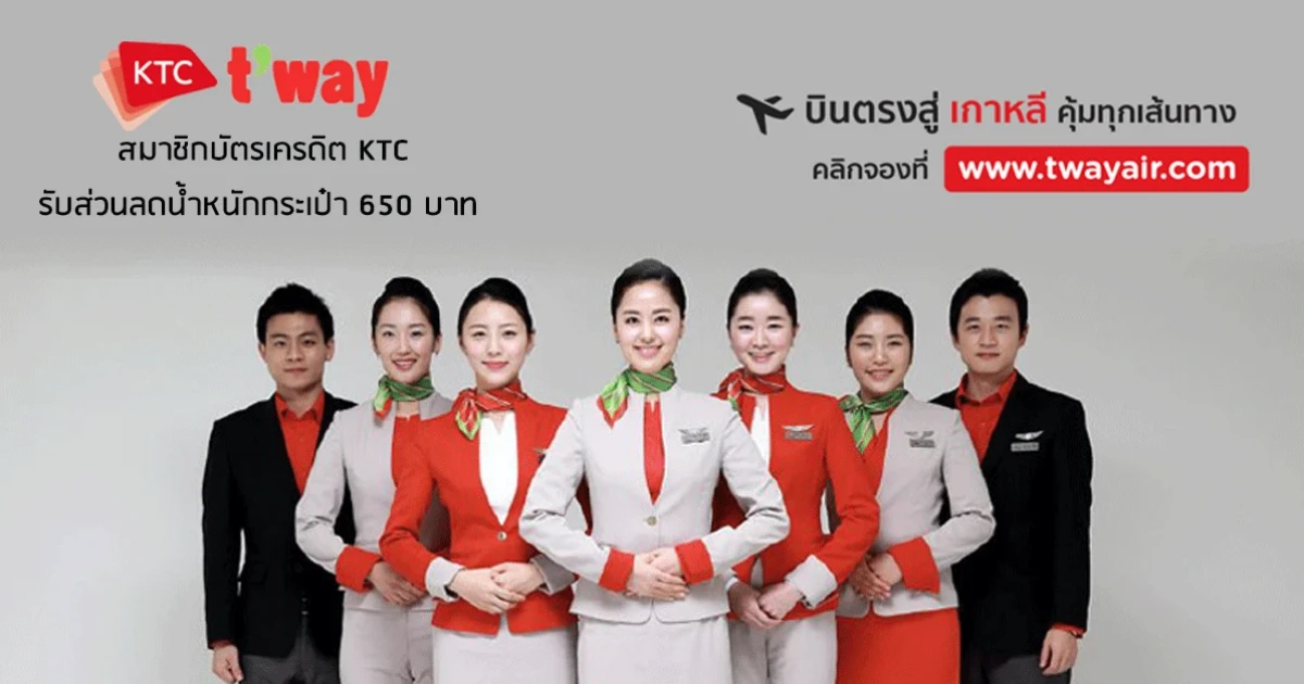 สมาชิกบัตรเครดิต KTC บินตรงเกาหลีสุดคุ้มกับสายการบิน t'way พิเศษ รับส่วนลดน้ำหนักกระเป๋า 650 บาท
