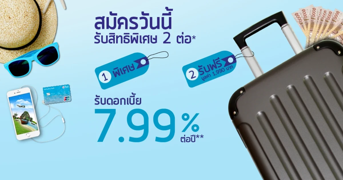 - รับฟรี กระเป๋าล้อลาก ขนาด 18 นิ้ว มูลค่า 1,990 บาท สำหรับลูกค้าที่มีรายการเบิกถอนเงินสดหรือรูดซื้อสินค้าผ่านบัตรกดเงินสด สะสมรวมใน 2 รอบบัญชีแรก ตั้งแต่ 6,000 บาทขึ้นไป โดยกระเป๋าจะถูกจัดส่งตามที่อยู่จัดส่งเอกสาร ตามที่ลูกค้าแจ้งไว้ ภายใน 30 วัน หลังจากสรุปรอบบัญชีที่ 2
