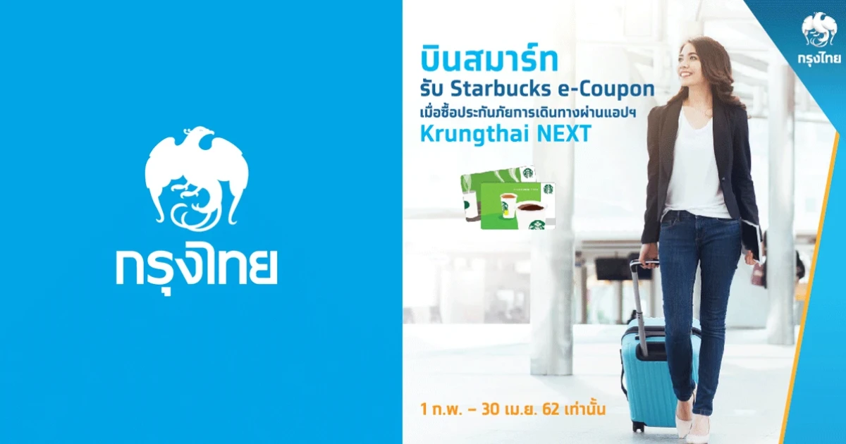 บินสมาร์ท รับ Starbucks e-Coupon เมื่อซื้อประกันภัยการเดินทางผ่านแอปฯ Krungthai NEXT