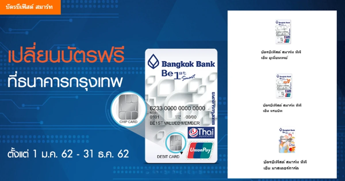 ปลอดภัย มั่นใจ ใช้บัตรชิปการ์ด...ฟรี! ค่าธรรมเนียมเปลี่ยนบัตรที่ ธ.กรุงเทพ ตั้งแต่ 1 ม.ค. 62 - 31 ธ.ค. 62