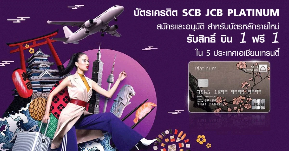 บัตรเครดิต SCB JCB PLATINUM สมัครและอนุมัติ สำหรับบัตรหลักรายใหม่ รับสิทธิ์ บิน 1 ฟรี 1 ใน 5 ประเทศ
