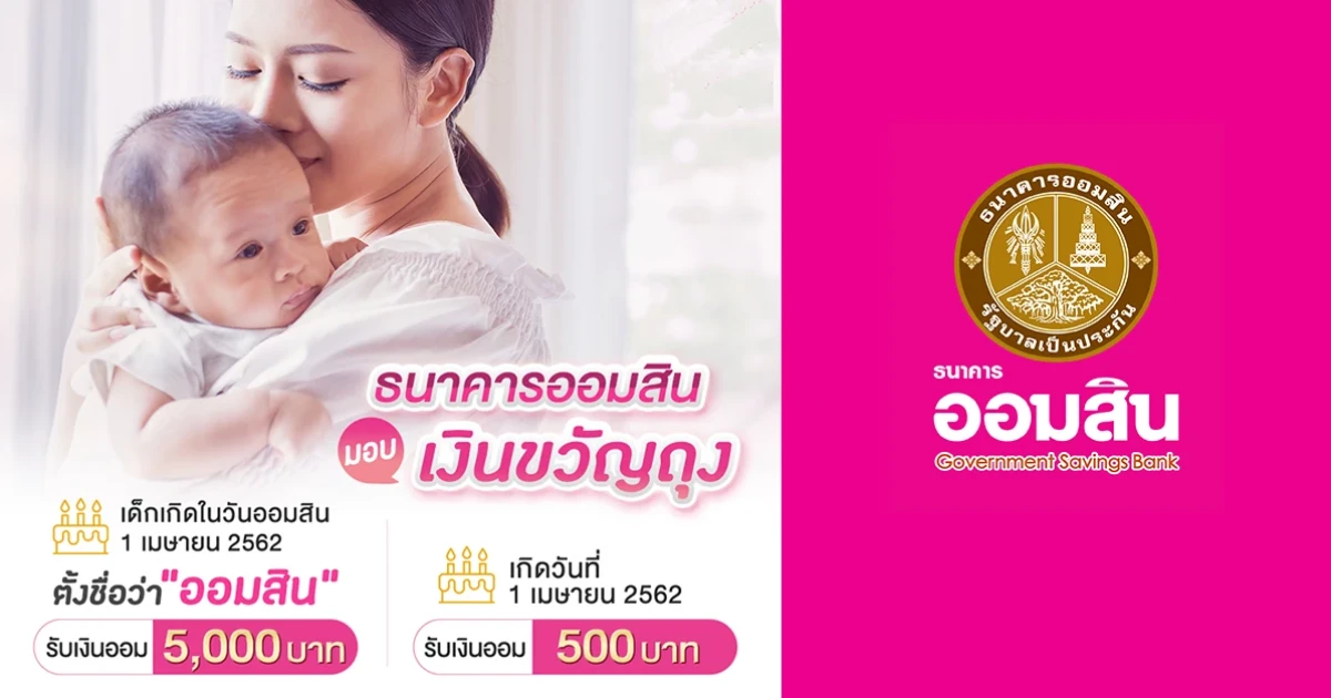 ธนาคารออมสินมอบเงินขวัญถุง สูงสุด 5,000 บาท สำหรับเด็กที่เกิดในวันออมสิน 1 เมษายน 2562