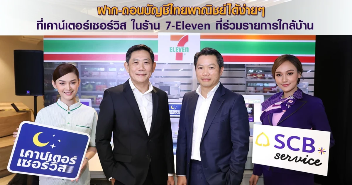 "ธนาคารไทยพาณิชย์" ผนึกกำลัง "ซีพี ออลล์" ประกาศความร่วมมือครั้งสำคัญ มุ่งสู่การเป็น Digital Financial Partnership นำเสนอบริการทางการเงินรูปแบบใหม่ให้กับลูกค้า เปิดตัว "SCB Service" (เอสซีบีเซอร์วิส) บริการด้านแบงก์กิ้งเอเย่นต์ของธนาคารไทยพาณิชย์ผ่านเคาน์เตอร์เซอร์วิสที่เซเว่นอีเลฟเว่นกว่า 11,000 สาขาทั่วประเทศ ให้บริการฝาก-ถอน เงินสดบัญชีเงินฝากไทยพาณิชย์ผ่านระบบดิจิทัลด้วย QR Code ในแอปพลิเคชัน SCB EASY ช่วยให้ลูกค้าที่มีความต้องการทำธุรกรรมเงินสดหลังเวลาทำการปกติ สามารถเข้าถึง "บริการธนาคาร" ได้อย่างสะดวกขึ้น ตลอด 24 ชั่วโมง