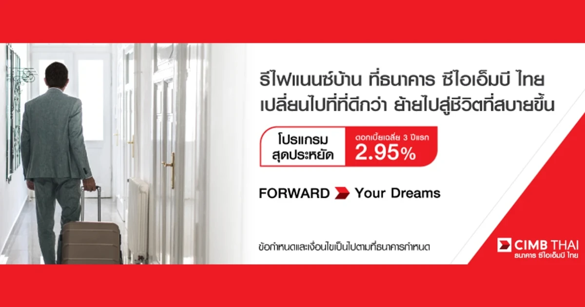 โปรแกรมสุดประหยัด ดอกเบี้ยเฉลี่ย 3 ปีแรก 2.95% สินเชื่อรีไฟแนนซ์บ้าน จากธนาคาร ซีไอเอ็มบี ไทย