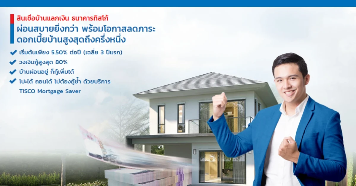 สินเชื่อบ้านแลกเงิน ธนาคารทิสโก้ ผ่อนสบายยิ่งกว่า พร้อมโอกาสลดภาระดอกเบี้ยบ้านสูงสุดถึงครึ่งหนึ่ง