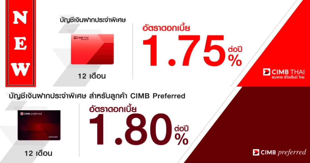 โปรโมชั่นเงินฝากดอกเบี้ยสูง กับ บัญชีเงินฝากประจำพิเศษ 12 เดือน จากธนาคารซีไอเอ็มบี ไทย