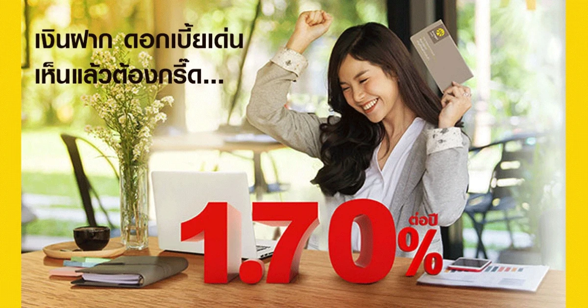 อัตราดอกเบี้ย : 1.70% ต่อปี