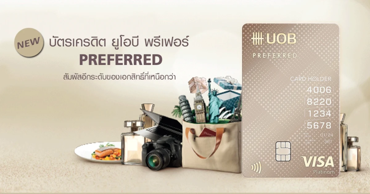 โฉมใหม่!! บัตรเครดิต ยูโอบี พรีเฟอร์ (UOB Preferred Card) สัมผัสอีกระดับของเอกสิทธิ์ที่เหนือกว่า สิทธิพิเศษครบครันในบัตรเดียว นอกจากนี้ยังรับคะแนนสะสมได้ง่ายๆ ทุก 15 บาท รับคะแนนสะสม UOB Reward Plus เท่ากับ 1 คะแนน และยังได้รับเครดิตเงินคืน เมื่อใช้จ่ายผ่านบัตรตามเงื่อนไขของธนาคาร พร้อมรับสิทธิพิเศษอื่นๆ อีกมากมาย ไปลองดูรายละเอียดของตัวบัตรฯ ตามด้านล่างนี้กันเลยค่ะ