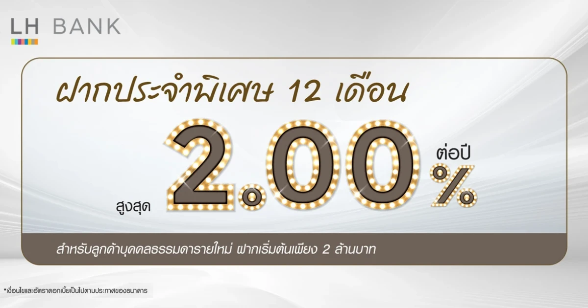 โปรโมชั่นบัญชีเงินฝากประจำพิเศษ 12 เดือน จาก LH Bank ให้ดอกเบี้ยสูงสุด 2.00% ต่อปี