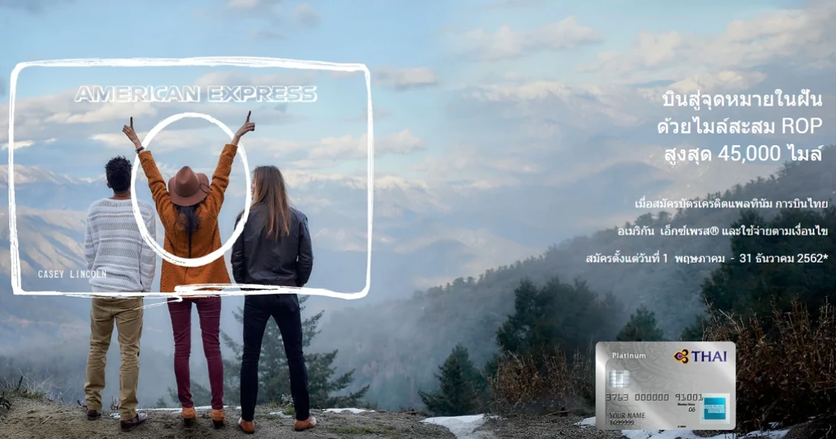 สมัครบัตรเครดิตแพลทินัม การบินไทย อเมริกันเอ็กซ์เพรส รับไมล์สะสมรอยัล ออร์คิด พลัสสูงสุด 45,000 ไมล์