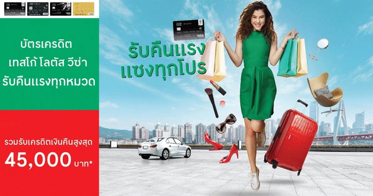 รับคืนแรง แซงทุกโปร รับเครดิตเงินคืนสูงสุด 45,000 บาท* กับบัตรเครดิตเทสโก้ โลตัส วีซ่า