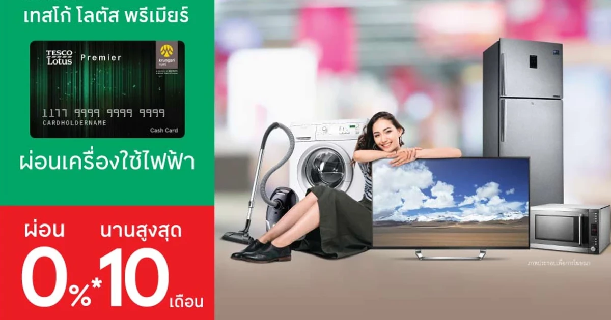 ผ่อนเครื่องใช้ไฟฟ้า 0% นานสูงสุด 10 เดือน ผ่านบัตรสินเชื่อเทสโก้ โลตัส พรีเมียร์