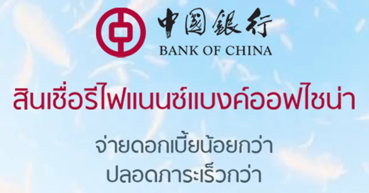 สินเชื่อบ้านรีไฟแนนซ์แบงค์ออฟไชน่า "ชีวิตเบาสบาย" ดอกเบี้ยปีแรกเพียง 0.90% ต่อปี