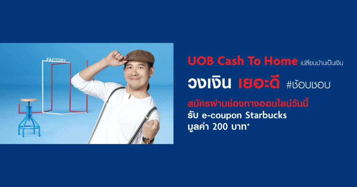 สมัคร UOB Cash To Home ผ่านช่องทางออนไลน์วันนี้รับ e-coupon Starbucks มูลค่า 200 บาท