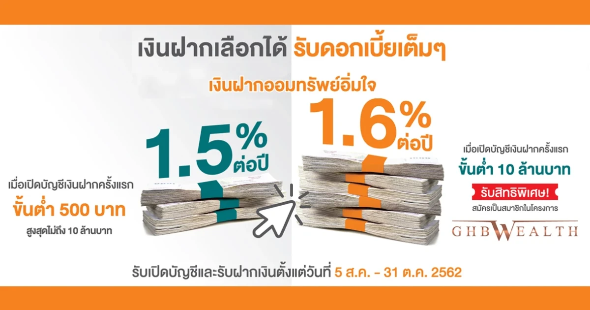 ช่วงเวลาที่เปิดรับฝาก : ตั้งแต่วันที่ 5 ส.ค. 62 ถึง 31 ต.ค. 62