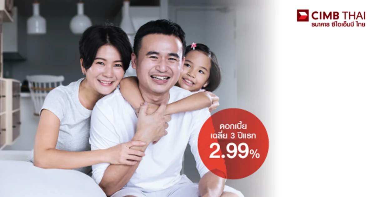 เลือกเป็นเจ้าของบ้านด้วย ดอกเบี้ยเฉลี่ย 3 ปีแรก เริ่มต้น 2.99% ด้วยสินเชื่อบ้าน ธนาคาร ซีไอเอ็มบี ไทย