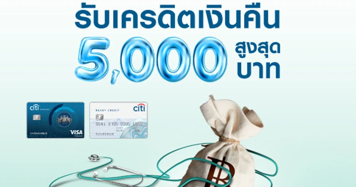 รับเครดิตเงินคืนสูงสุด 5,000 บาท เมื่อใช้จ่ายผ่านบัญชีซิตี้ เรดดี้เครดิต ที่โรงพยาบาลที่ร่วมรายการ