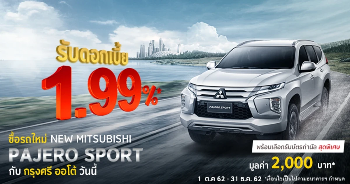 รับดอกเบี้ย 1.99% เมื่อซื้อรถใหม่ NEW MITSUBISHI PAJERO SPORT กับกรุงศรี ออโต้ วันนี้