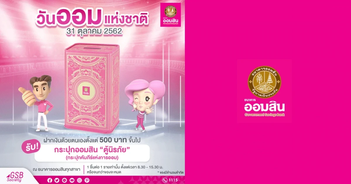 ฝากเงินตั้งแต่ 500 บาทขึ้นไป ในวันออมแห่งชาติ ที่ธนาคารออมสินทุกสาขา รับกระปุกออมสิน "ตู้นิรภัย"
