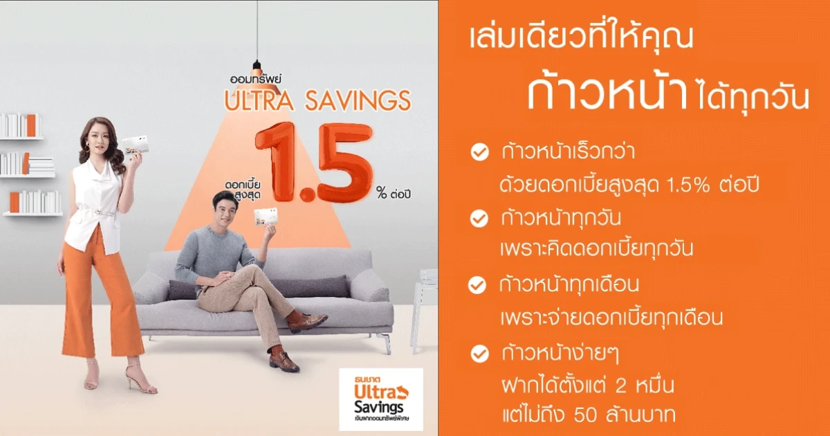 บัญชีออมทรัพย์ Ultra Savings เล่มเดียว ให้คุณก้าวหน้าได้ทุกวัน พร้อมรับดอกเบี้ยสูงสุด 1.50% ต่อปี