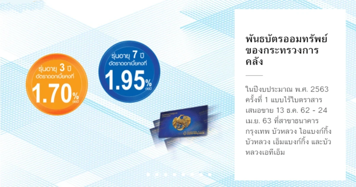 ลงทุนอย่างมั่นใจกับพันธบัตรออมทรัพย์ของกระทรวงการคลัง ในปีงบประมาณ พ.ศ. 2563 ครั้งที่ 1 แบบไร้ใบตราสาร