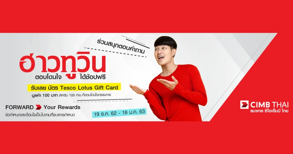 ฮาวทูวิน ได้ช้อปฟรี ใน CIMB THAI Bank LINE Official Account มีสิทธิ์รับ Tesco Lotus Gift Card