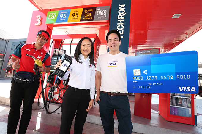 การชำระเงินผ่านบัตรคอนแทคเลสช่วยให้ผู้ถือบัตรที่ออกโดยธนาคารต่างๆ สามารถ ?แตะ เพื่อ จ่าย? ด้วยบัตรเครติด บัตรเดบิต หรือบัตรเติมเงินของวีซ่าได้ ซึ่งการชำระเงินในรูปแบบนี้มีข้อดีหลักๆ ที่ช่วยให้ผู้ถือบัตรสามารถชำระเงินโดยที่ไม่ต้องปล่อยบัตรออกจากมือระหว่างการทำธุรกรรม โดยตั้งแต่วันที่ 1 มกราคม 2563 เป็นต้นไป ลูกค้าจะไม่ต้องเซ็นชื่อเพื่อยืนยันการทำธุรกรรมสำหรับรายการที่ต่ำกว่าหรือเท่ากับ 1,500 บาท ซึ่งทั้งหมดนี้จะช่วยให้ใช้เวลาในปั๊มน้ำมันน้อยลง และสามารถเดินทางจากจุดหนึ่งไปสู่อีกจุดหนึ่งได้อย่างรวดเร็วยิ่งขึ้น