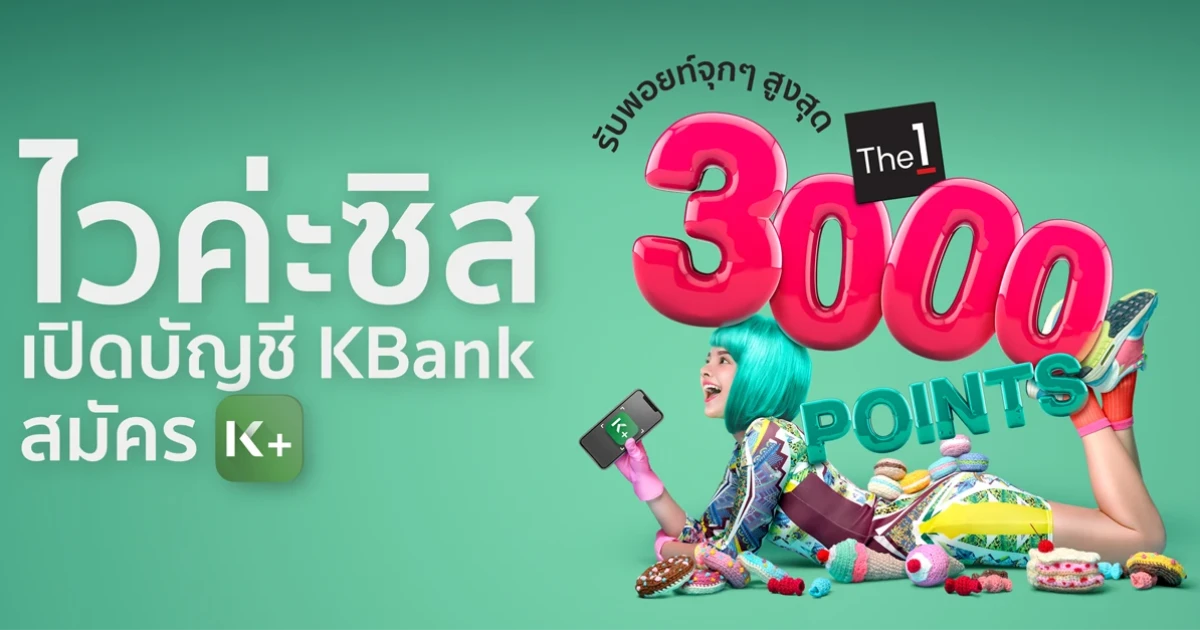 เปิดบัญชี KBank และสมัคร K PLUS วันนี้ รับคะแนน The 1 เพิ่มสุดคุ้ม 3,000 คะแนน