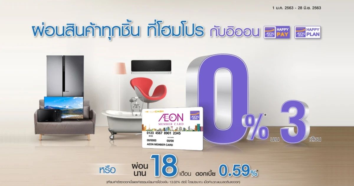 สถานที่ : โฮมโปรทุกสาขา ที่ให้บริการผ่อนชำระค่าสินค้าและบริการ ผ่านบริการ "อิออน แฮปปี้ เพย์ และ อิออน แฮปปี้ แพลน"