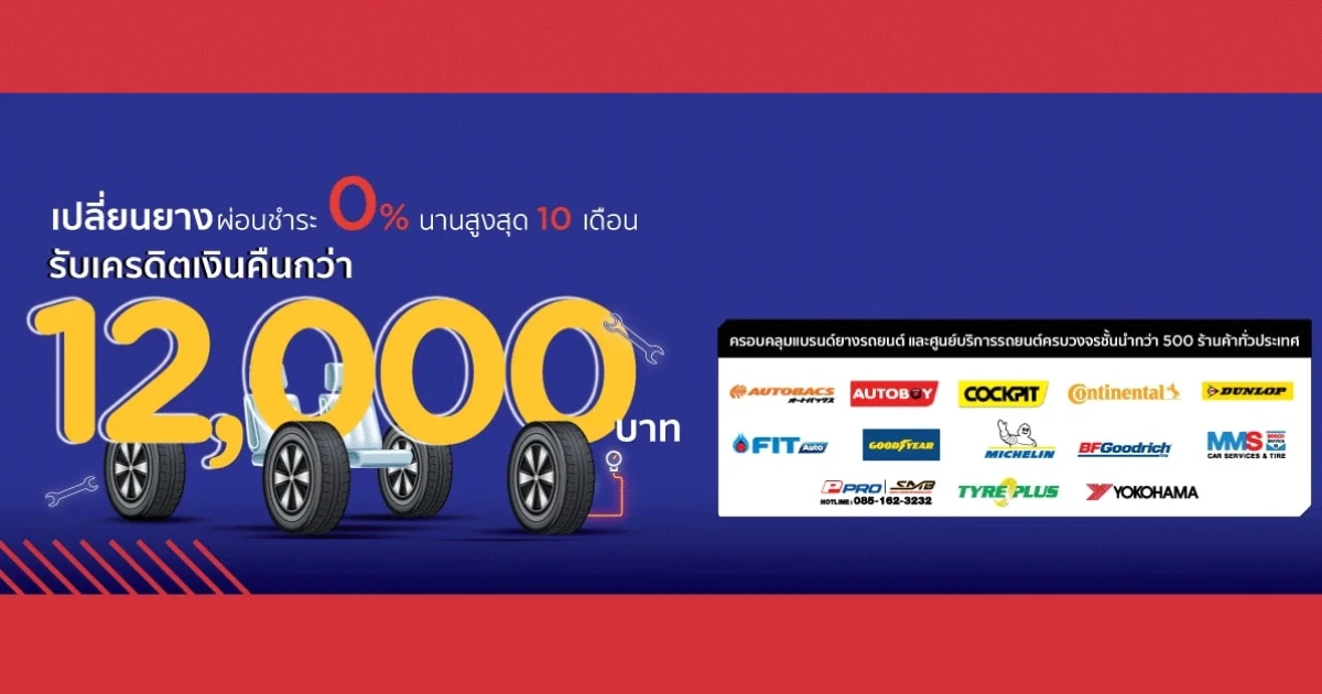 เปลี่ยนยางรอบนี้ได้คุ้มสุด! กับบัตรเครดิต KTC รับเครดิตเงินคืนสูงกว่า 12,000 บาท