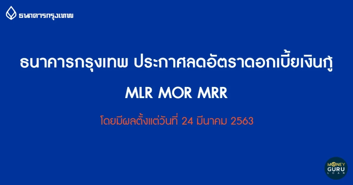 นายสุวรรณ แทนสถิตย์ กรรมการรองผู้จัดการใหญ่ ธนาคารกรุงเทพ จำกัด (มหาชน) เปิดเผยว่า ธนาคารประกาศปรับลดอัตราดอกเบี้ยเงินให้สินเชื่อเอ็มแอลอาร์ (MLR) หรืออัตราดอกเบี้ยสำหรับลูกค้ารายใหญ่ชั้นดี ประเภทเงินกู้แบบมีระยะเวลา (Minimum Loan Rate) ลง 0.125% อัตราดอกเบี้ยเงินให้สินเชื่อเอ็มโออาร์ (MOR) หรืออัตราดอกเบี้ยสำหรับลูกค้ารายใหญ่ชั้นดี ประเภทเงินเบิกเกินบัญชี (Minimum Overdraft Rate) ลง 0.25% และอัตราดอกเบี้ยเงินให้สินเชื่อเอ็มอาร์อาร์ (MRR) หรืออัตราดอกเบี้ยลูกค้ารายย่อยชั้นดี (Minimum Retail Rate) ลง 0.125% โดยมีผลตั้งแต่วันที่ 24 มีนาคม พ.ศ. 2563