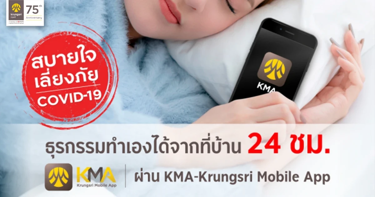 สบายใจเสี่ยงภัย COVID-19 ธุรกรรมทำเองได้จากที่บ้าน 24 ชม. ผ่าน KMA-Krungsri Mobile App