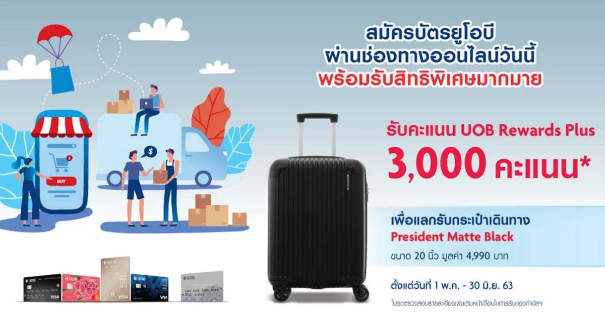 สมัครบัตรเครดิตยูโอบี ผ่านช่องทางออนไลน์ วันนี้! รับคะแนนสะสมเพื่อแลกรับกระเป๋าเดินทางขนาด 20 นิ้ว