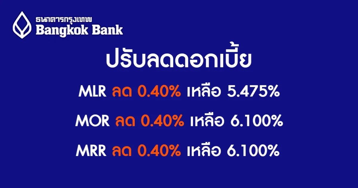 ธนาคารกรุงเทพ ลดดอกเบี้ยเงินกู้ทั้ง 3 ประเภท ลง 0.40% ช่วยแบ่งเบาภาระลูกค้าประชาชน และลดต้นทุนรับมือโควิด 19