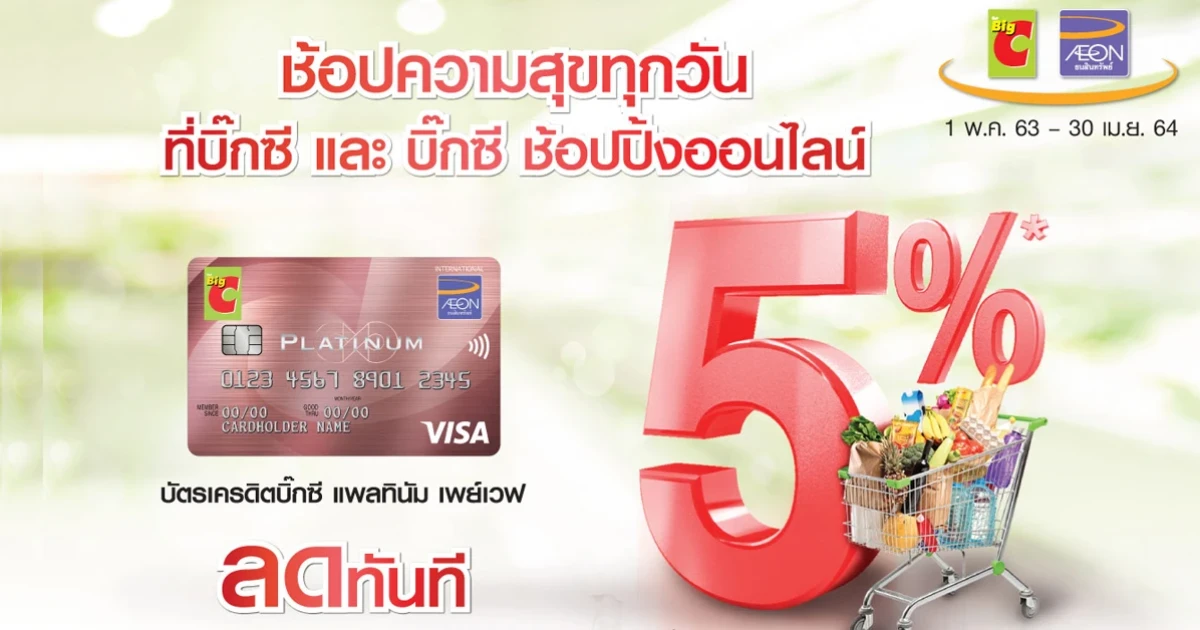 ช้อปความสุขทุกวันที่บิ๊กซี และบิ๊กซี ช้อปปิ้งออนไลน์ รับส่วนลดทันที 5% ผ่านบัตรฯ บิ๊กซี แพลทินัม เพย์เวฟ
