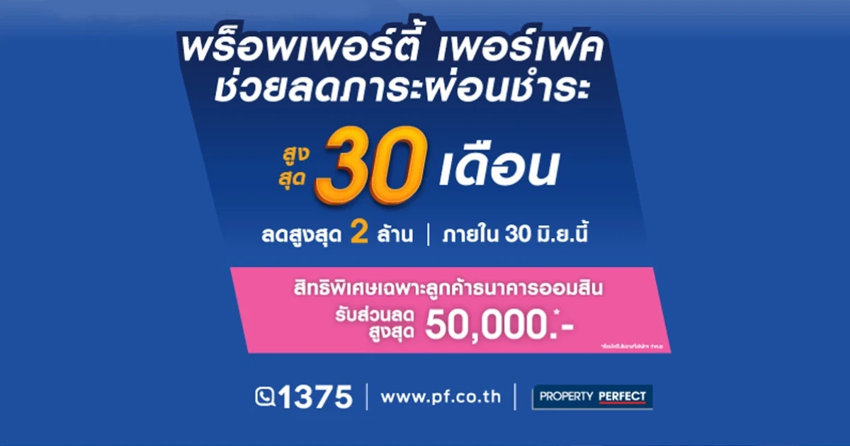 โปรฯ พิเศษจาก พร็อพเพอร์ตี้ เพอร์เฟค ช่วยลดภาระผ่อนชำระ สูงสุด 30 เดือน เฉพาะลูกค้าธนาคารออมสิน