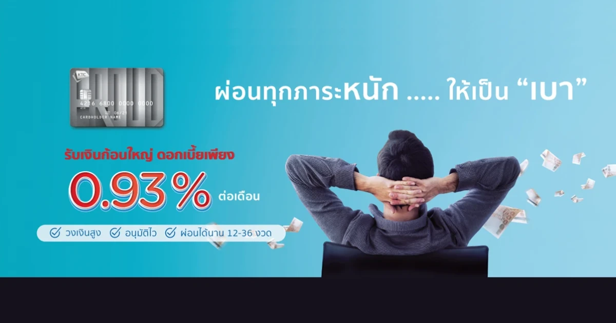 KTC PROUD สมัครวันนี้ รับเงินกู้ดอกเบี้ยต่ำ ดอกเบี้ยเบาสุดๆ เพียง 0.93% ต่อเดือน หรือแค่หมื่นละ 3.25 บาทต่อวัน