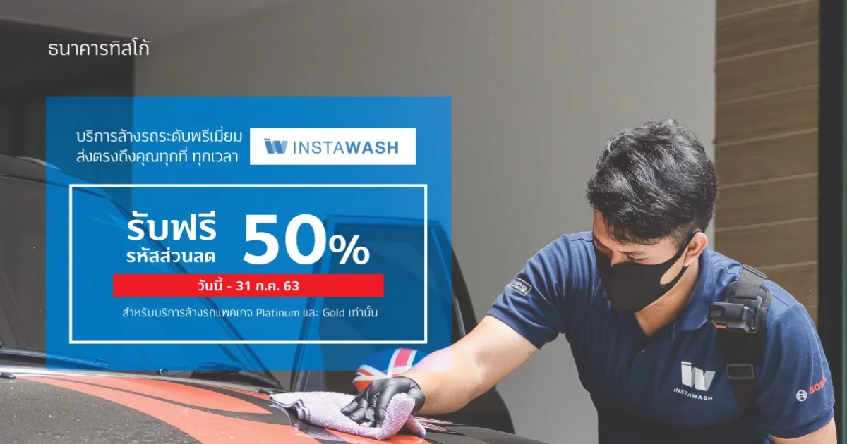รับรหัสส่วนลดฟรี! Instawash บริการล้างรถระดับพรีเมี่ยม สำหรับลูกค้า TISCO เท่านั้น