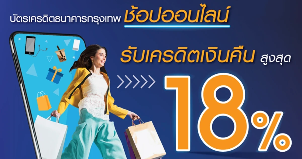 บัตรเครดิตธนาคารกรุงเทพ ... ช้อปออนไลน์ รับเครดิตเงินคืนสูงสุด 18% เมื่อช้อปผ่านร้านค้าออนไลน์ที่ร่วมรายการ และแลกใช้คะแนนสะสมตามที่กำหนด ตั้งแต่วันนี้ - 31 ก.ค. 63