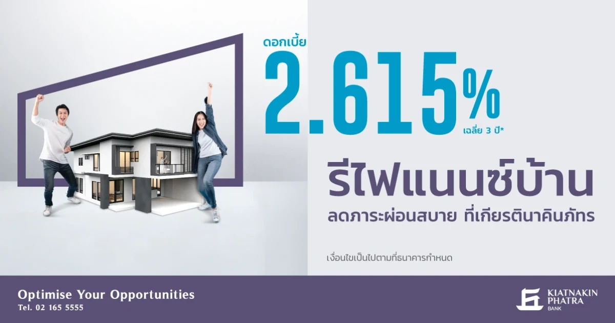 รีไฟแนนซ์บ้าน ลดภาระผ่อนสบาย ที่เกียรตินาคินภัทร เฉลี่ย 3 ปี ดอกเบี้ย 2.615% ต่อปี
