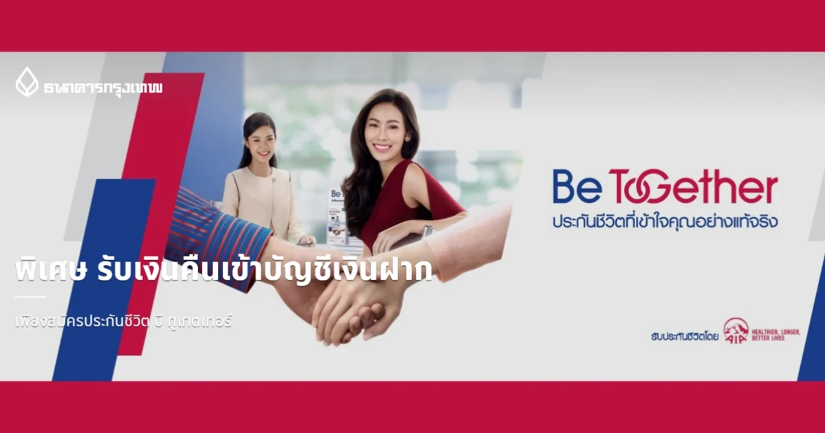 - รายการส่งเสริมการขายนี้ไม่นับรวมค่าเบี้ยประกันชีวิตควบการลงทุน บี ทูเกตเทอร์ ยูนิต ลิงค์ (Be Together Unit Linked)