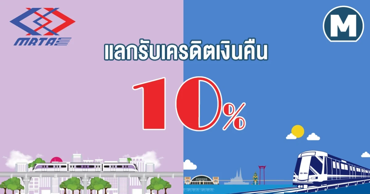 คุ้มค่าทุกการเดินทาง กับ บัตรเครดิต KTC ที่ MRT สายสีม่วง และสายสีน้ำเงิน แลกรับเครดิตเงินคืน 10%*