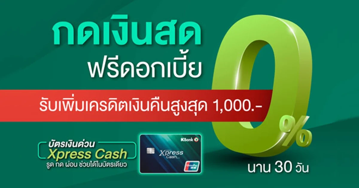 สิทธิพิเศษสำหรับมนุษย์เงินเดือนเท่านั้น! กดเงินสดฟรีดอกเบี้ย 0% นานสูงสุด 30 วัน รับเพิ่ม! เครดิตเงินคืนสูงสุด 1,000 บาท
