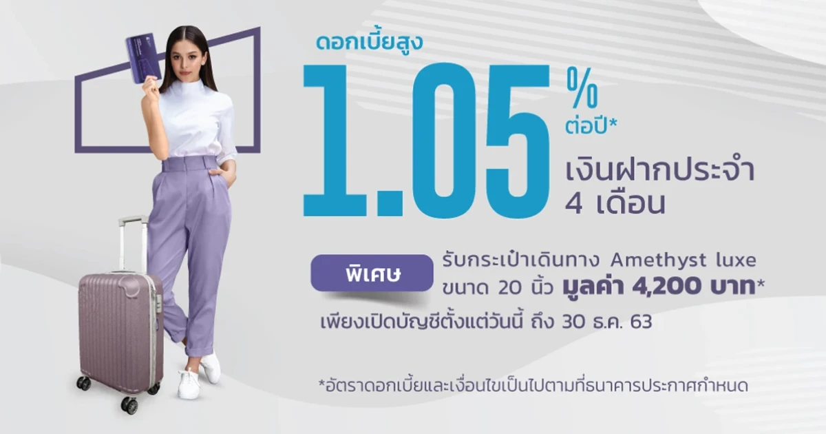 สิทธิพิเศษสำหรับลูกค้าใหม่ และลูกค้าปัจจุบันที่ได้รับ SMS แจ้งสิทธิเรียนเชิญแคมเปญ เพียงเปิด บัญชีเงินฝากประจำ 4 เดือน รับฟรี! ของสมนาคุณ
